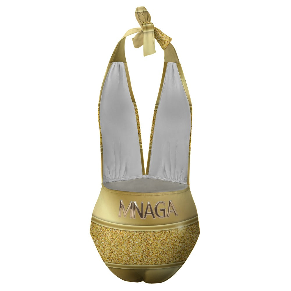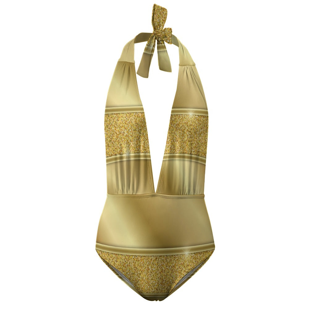 Ladies Gold Halter One Piece Bikini Swimsuit