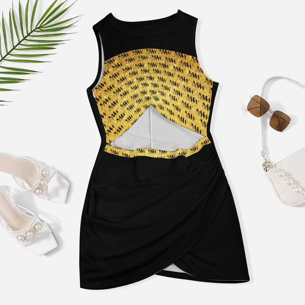 MW Black and Gold Navel-Baring Cross-Fit Hip Skirt