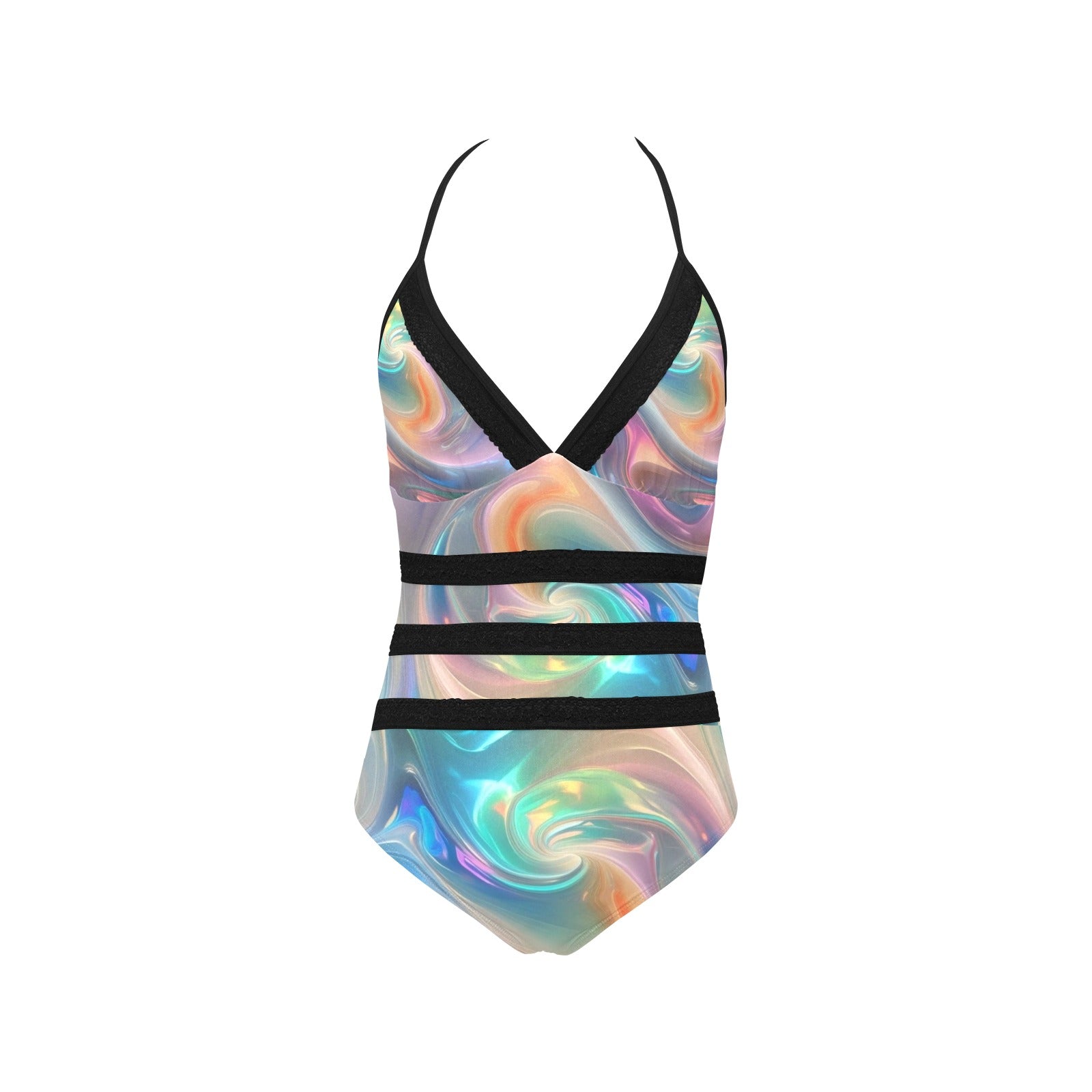 Opal Swirls Lace Band Embossing Swimsuit (S15)